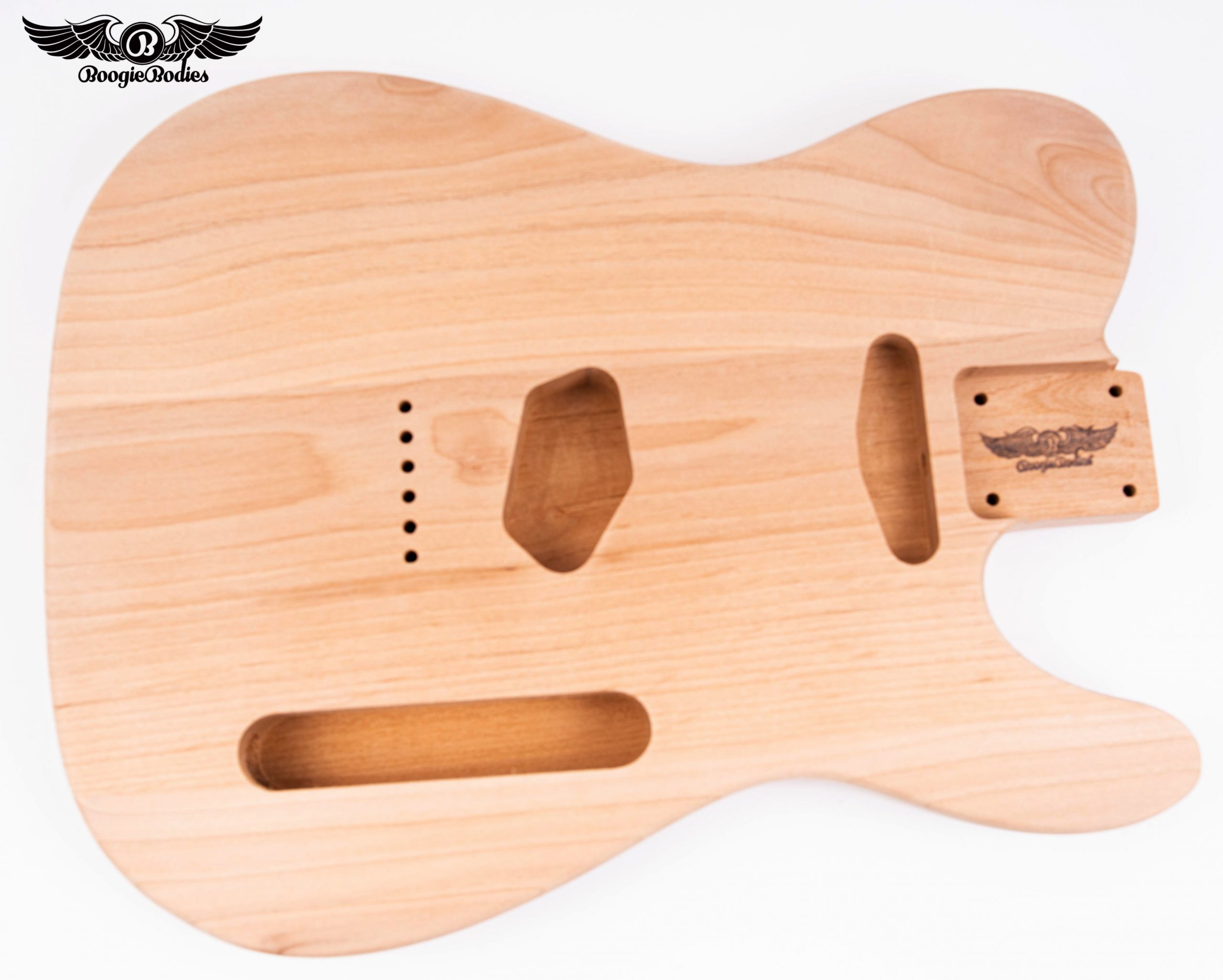 This Boogie Bodies TE Style Body is made from Solid Alder with three piece construction. Weighing in between 3 and 3.25 lbs. Neck pocket is 2 1/8″ – Properly aged with a very low moisture content. These bodies are perfect for your project guitar! WWEVHD? (What Would Eddie Van Halen Do?) – Get your shit together and build your dream guitar!