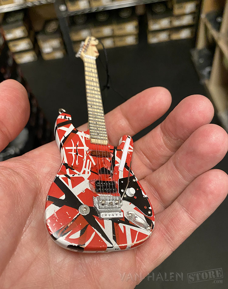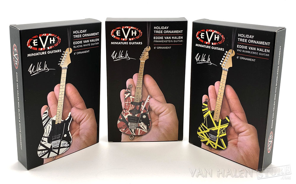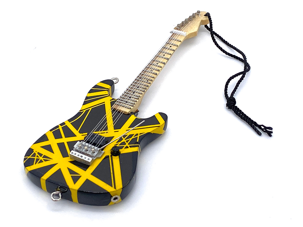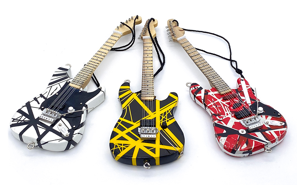 Eddie Van Halen Guitar Holiday Ornament will look AMAZING on your Christmas tree or hanging from the rear view mirror of your car. These hand crafted, impeccably detailed 6″ guitar holiday ornaments are replicas of Eddie Van Halen’s iconic guitars and are available in 3 models: