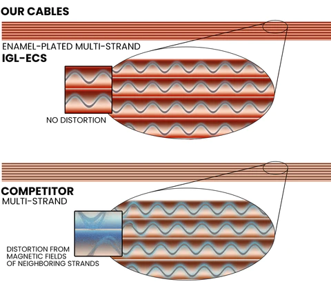 Our proprietary IGL-ECS (Increased Grain Linearity) utilizes copper conductors for positive and negative runs for the signal path.