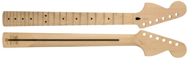 CBS Strat® style replacement neck features a reversed headstock, compound radius, and maple fingerboard fitted with 22 medium frets. If installing vintage tuners; you may be required to install 10 mm adapter bushings. Mighty Mite does not supply these bushings. This Strat® style neck is made in Indonesia with quality tone woods. Due to the nature of wood, no two necks are the same and may differ from what is pictured. Never force the neck into the pocket; it should just drop into the neck pocket or be a little snug. Remember that the finish of the neck and body will make the neck pocket smaller.